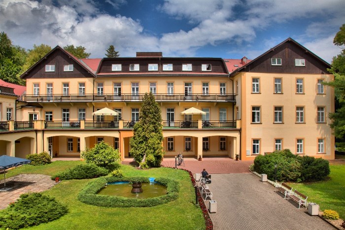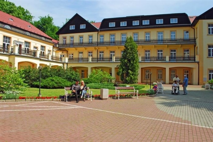 Terezne Lázne is located in the Czech city of Dubí, 97 km from the capital, Prague. Teresa Sanatorium is considered one of the best sanatoriums specialized in hydrotherapy, and the splendor of this sanatorium lies in its location at the foot of Mount Krushny, in addition to the presence of a vast forest around it.